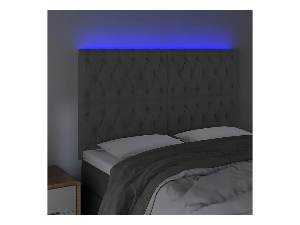 Tête de lit à LED Gris foncé 144x7x118/128 cm Velours POI12998 BonneVie Meuble