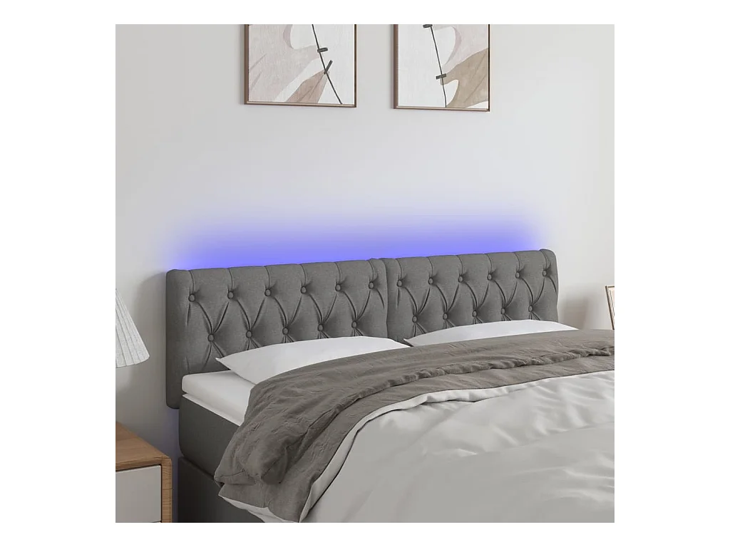 Tête de lit à LED Gris foncé 144x7x78/88 cm Tissu