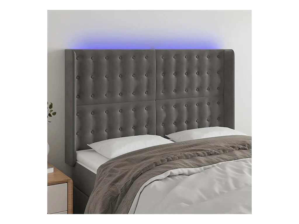 Tête de lit à LED Gris foncé 147x16x118,128 cm Velours LKC41707 BonneVie Meuble