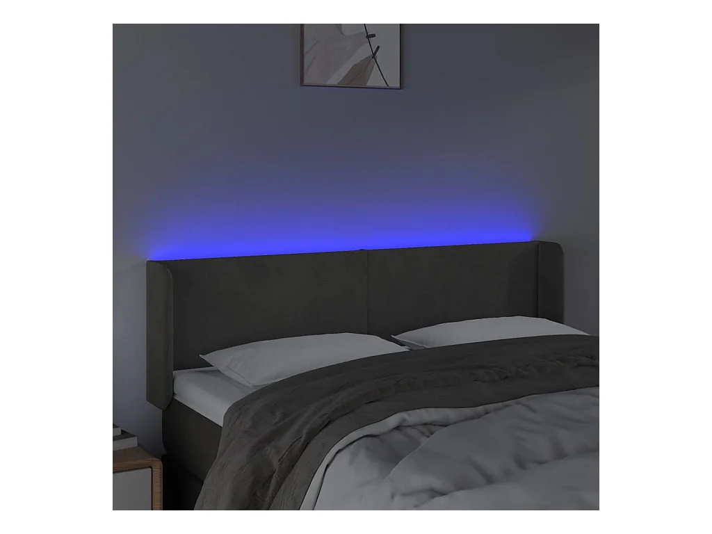 Tête de lit à LED Gris foncé 147x16x78/88 cm Velours POI97398 BonneVie Meuble