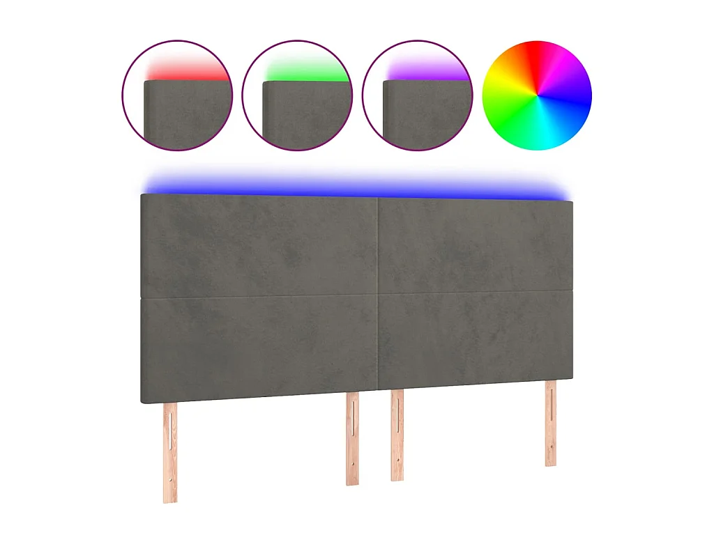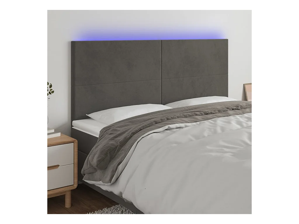 Tête de lit à LED Gris foncé 200x5x118/128 cm Velours POI86753 BonneVie Meuble