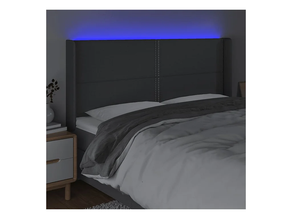 Tête de lit à LED Gris foncé 163x16x118/128 cm Tissu QED22819