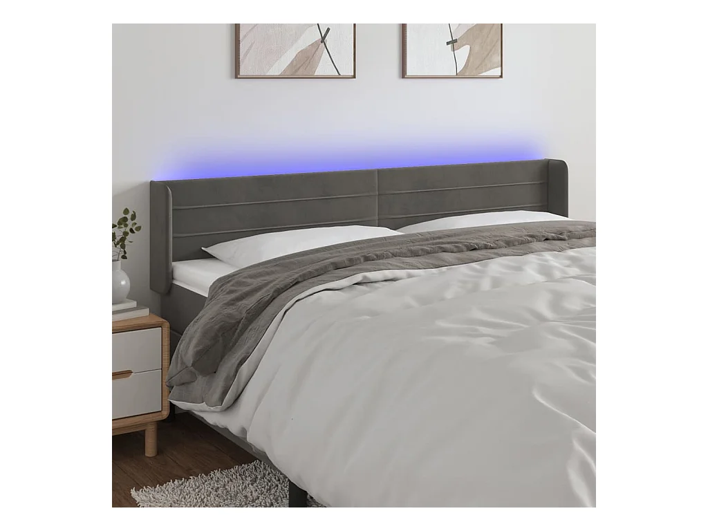 Tête de lit à LED Gris clair 163x16x78/88 cm Velours POI14464 BonneVie Meuble
