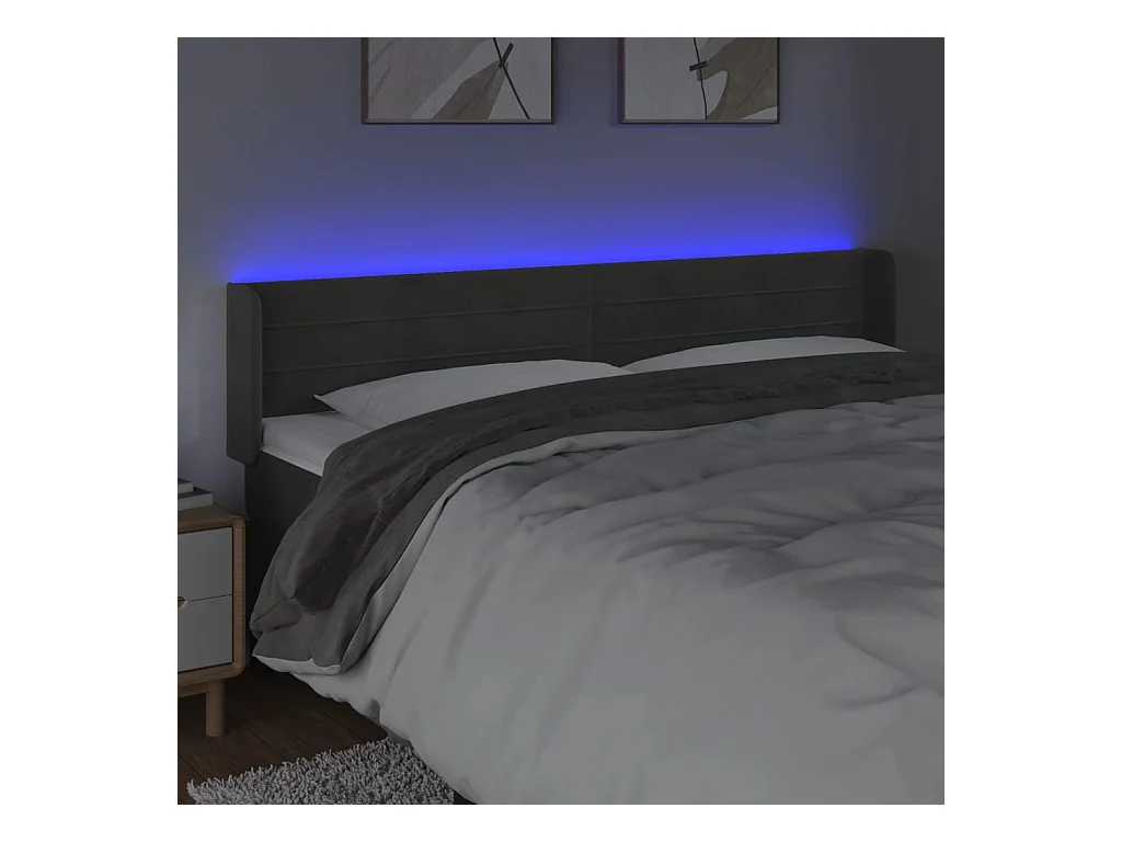 Tête de lit à LED Gris foncé 163x16x78/88 cm Velours POI34883 BonneVie Meuble