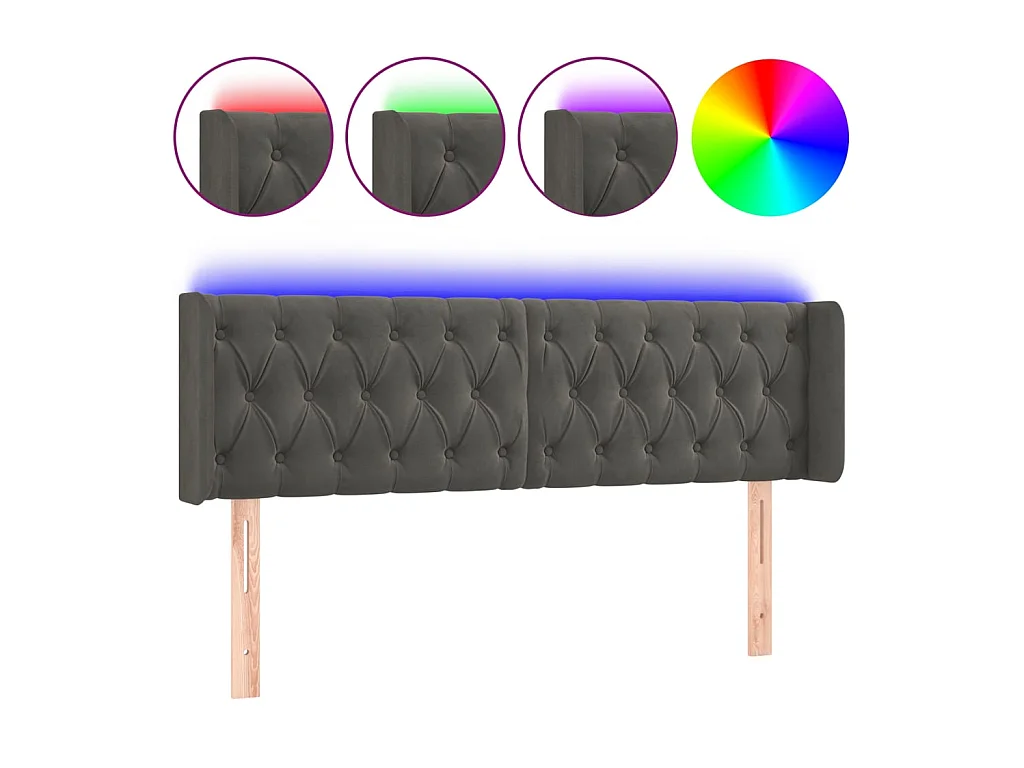 Tête de lit à LED Gris foncé 163x16x78/88 cm Velours POI34883 BonneVie Meuble