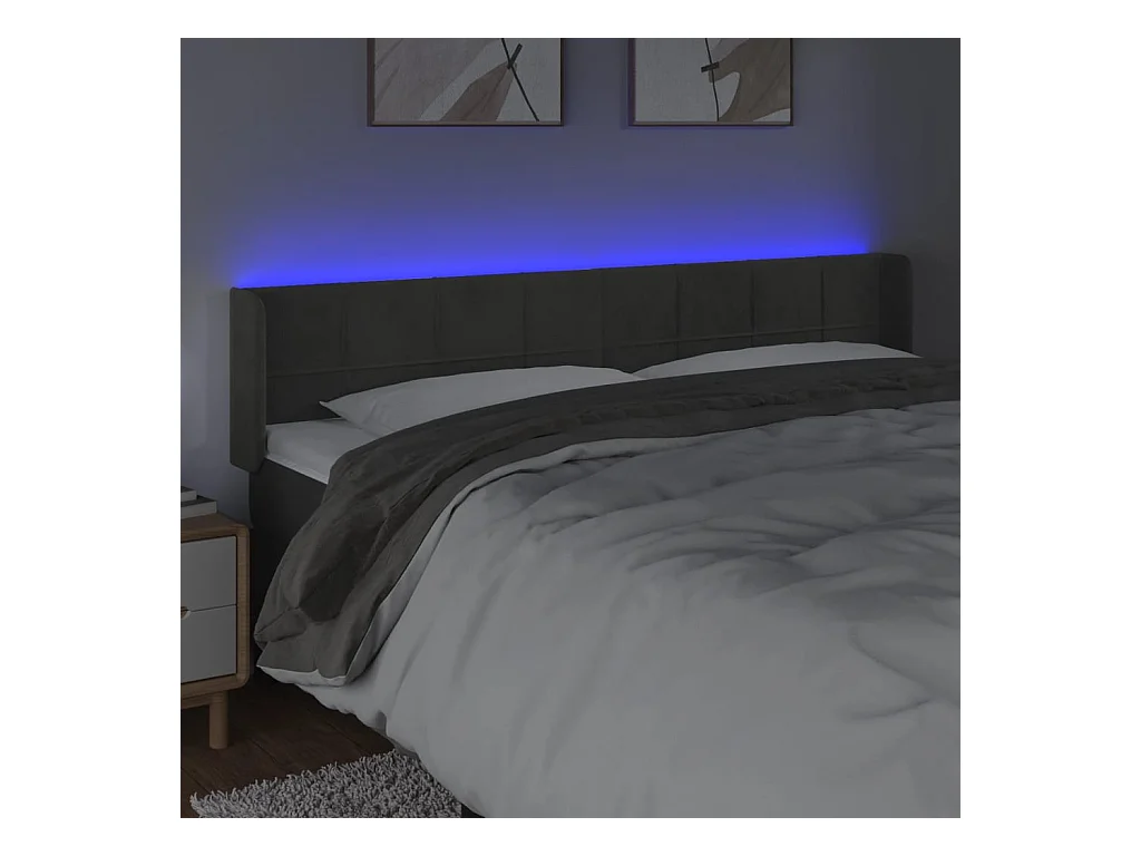 Tête de lit à LED Gris foncé 163x16x78/88 cm Velours POI98459 BonneVie Meuble