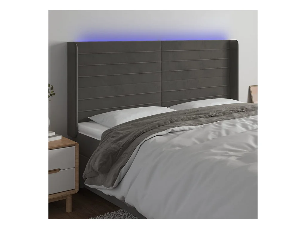 Tête de lit à LED Gris foncé 183x16x118,128 cm Velours LKC35857 BonneVie Meuble
