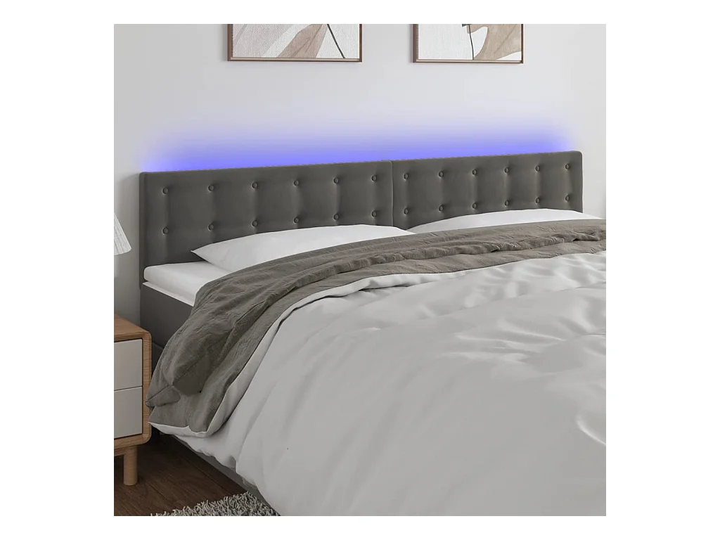 Tête de lit à LED Gris foncé 200x5x78/88 cm Velours POI20770 BonneVie Meuble