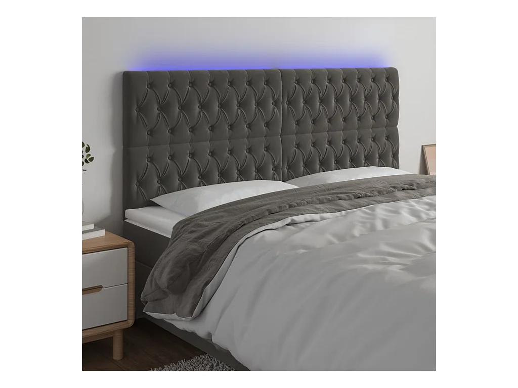 Tête de lit à LED Gris foncé 200x7x78/88 cm Velours POI73990 BonneVie Meuble