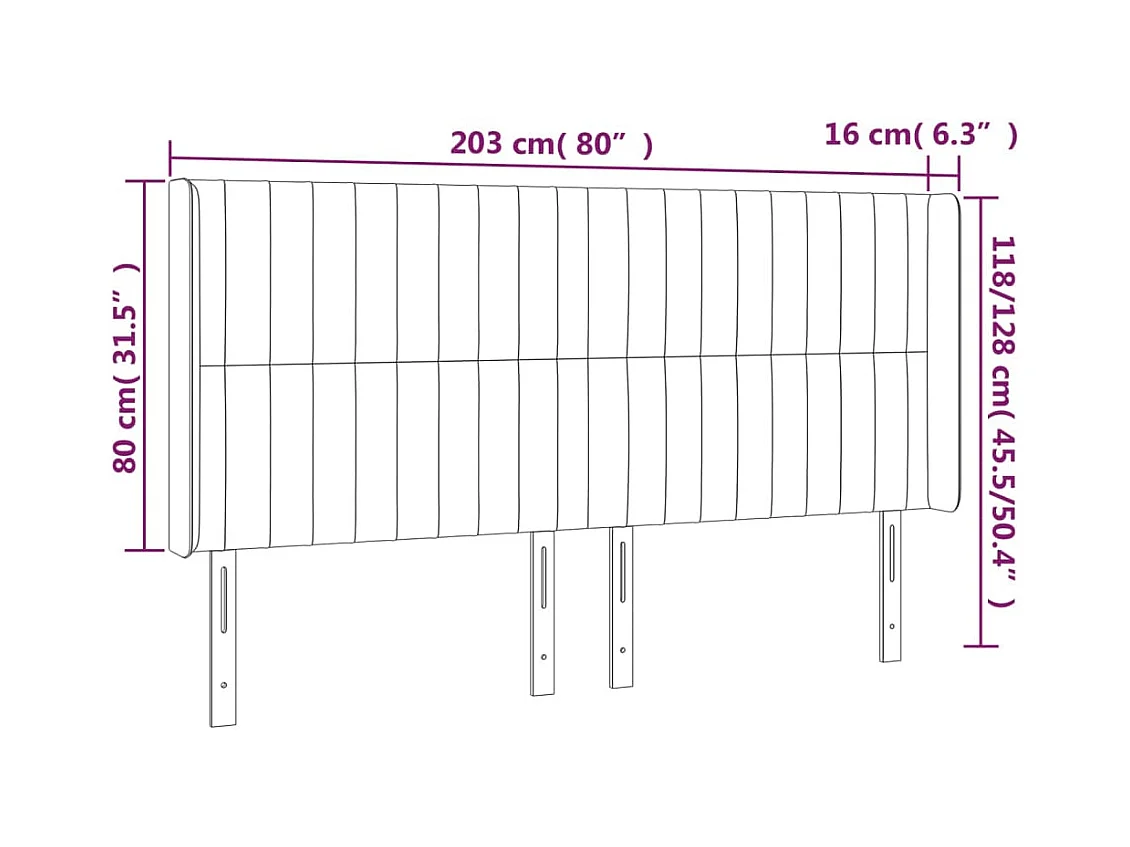 Tête de lit avec oreilles Gris foncé 203x16x118/128 cm Velours