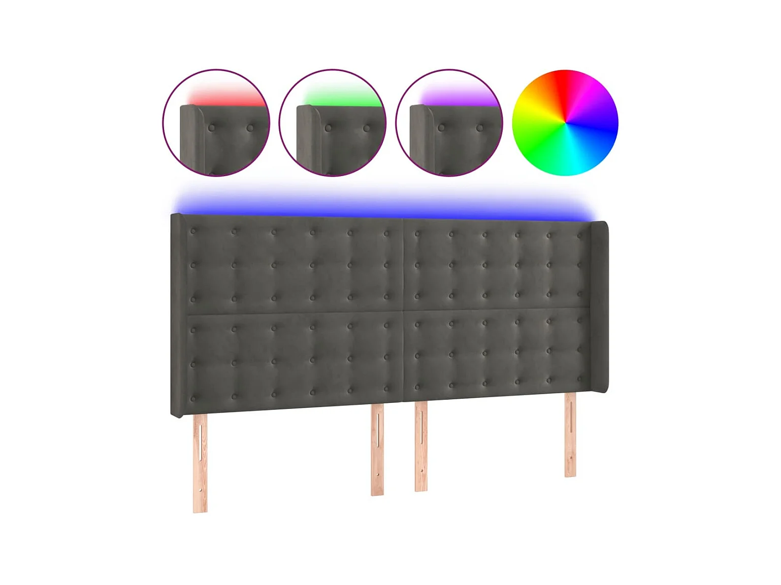 Tête de lit à LED Gris foncé 203x16x118/128 cm Velours POI58170 BonneVie Meuble