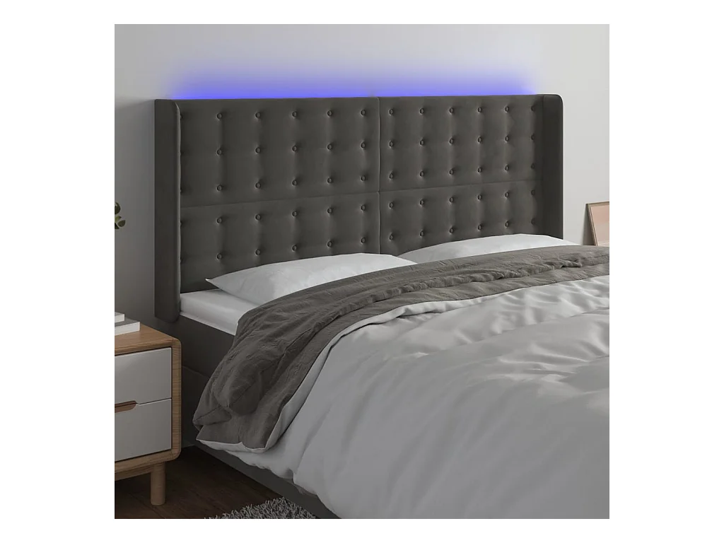 Tête de lit à LED Gris foncé 203x16x118/128 cm Velours POI18691 BonneVie Meuble