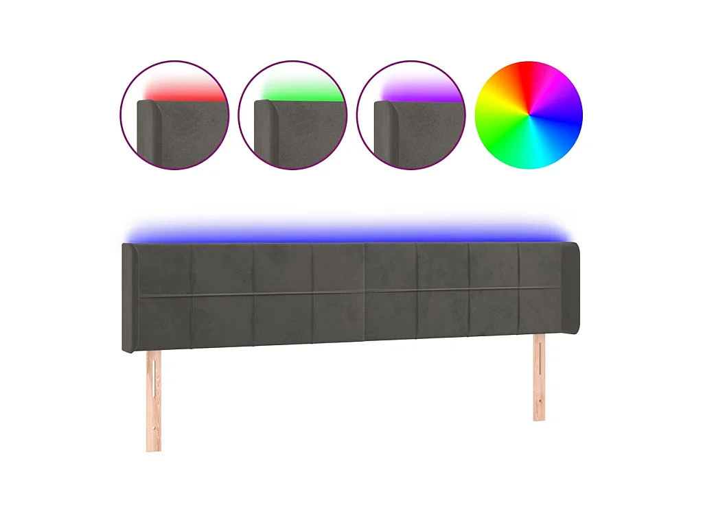 Tête de lit à LED Gris foncé 203x16x78/88 cm Velours POI22276 BonneVie Meuble