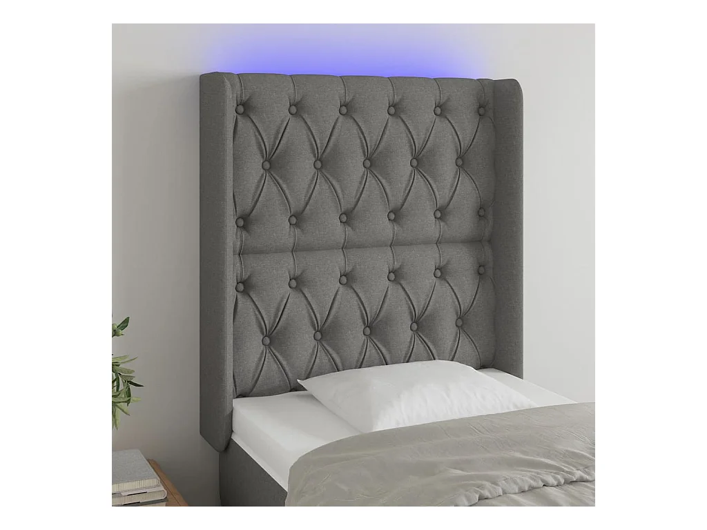 Tête de lit à LED Gris foncé 83x16x118/128 cm Tissu POI75835 BonneVie Meuble