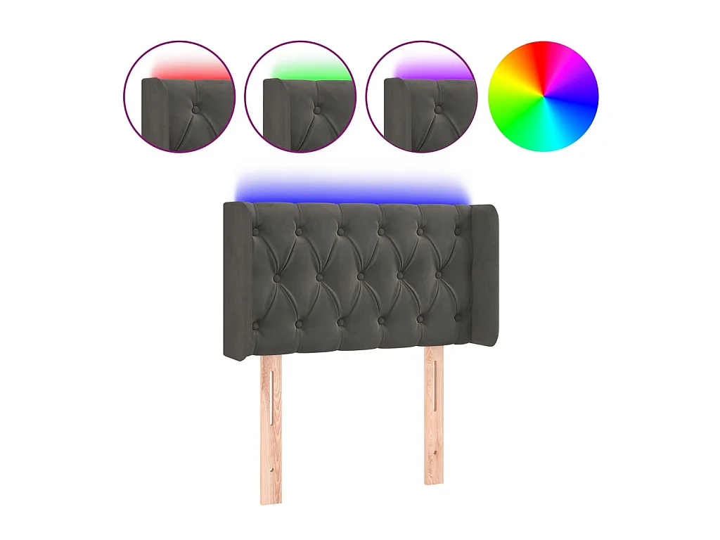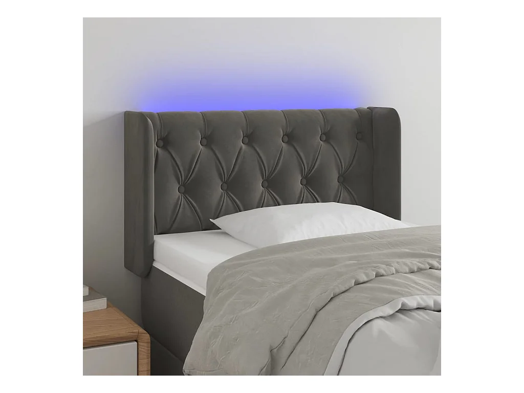 Tête de lit à LED Gris foncé 93x16x78,88 cm Velours LKC35834 BonneVie Meuble