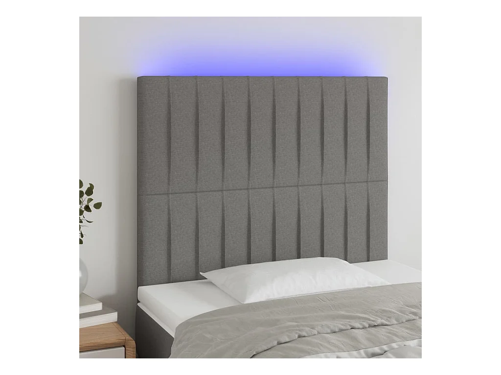 Tête de lit à LED Gris foncé 100x5x118/128 cm Tissu