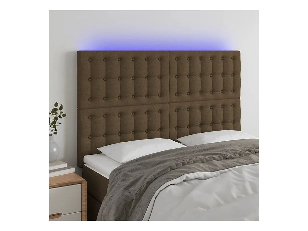 Tête de lit à LED Marron Foncé 144x5x78/88 cm Tissu POI49554 BonneVie Meuble