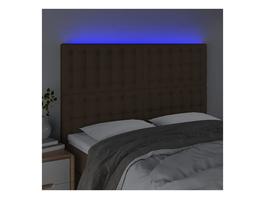 Tête de lit à LED Marron foncé 200x5x118,128 cm Tissu PEWV41773 BonneVie Meuble