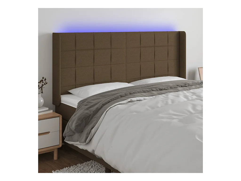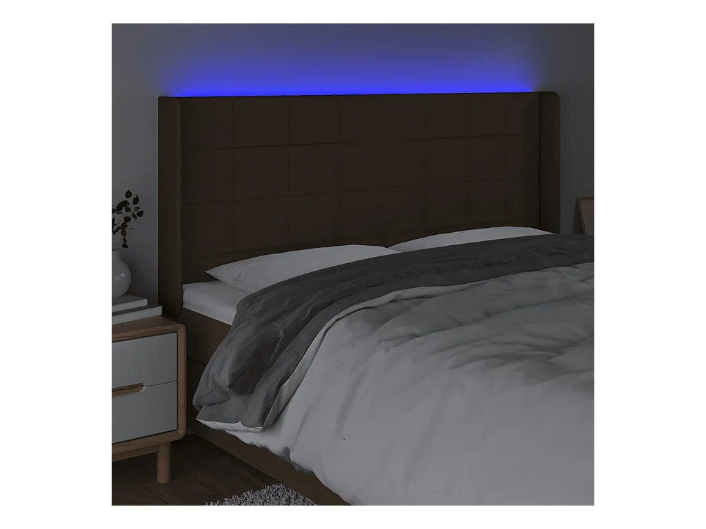 Tête de lit à LED Marron foncé 163x16x118/128 cm Tissu