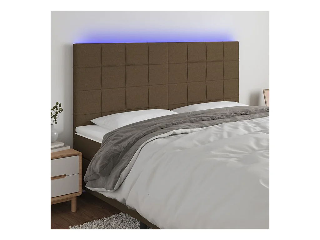 Tête de lit à LED Marron foncé 180x5x118/128 cm Tissu