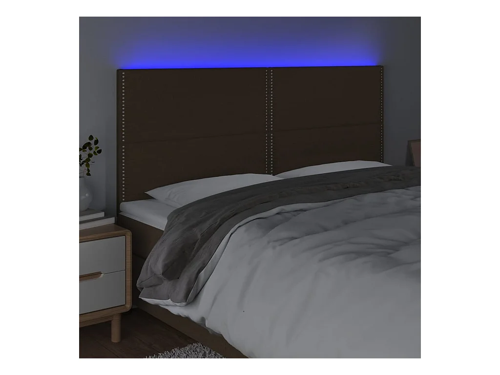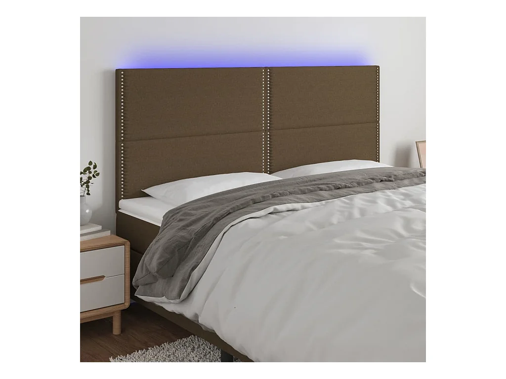Tête de lit à LED Marron foncé 183x16x118/128 cm Tissu FR294784