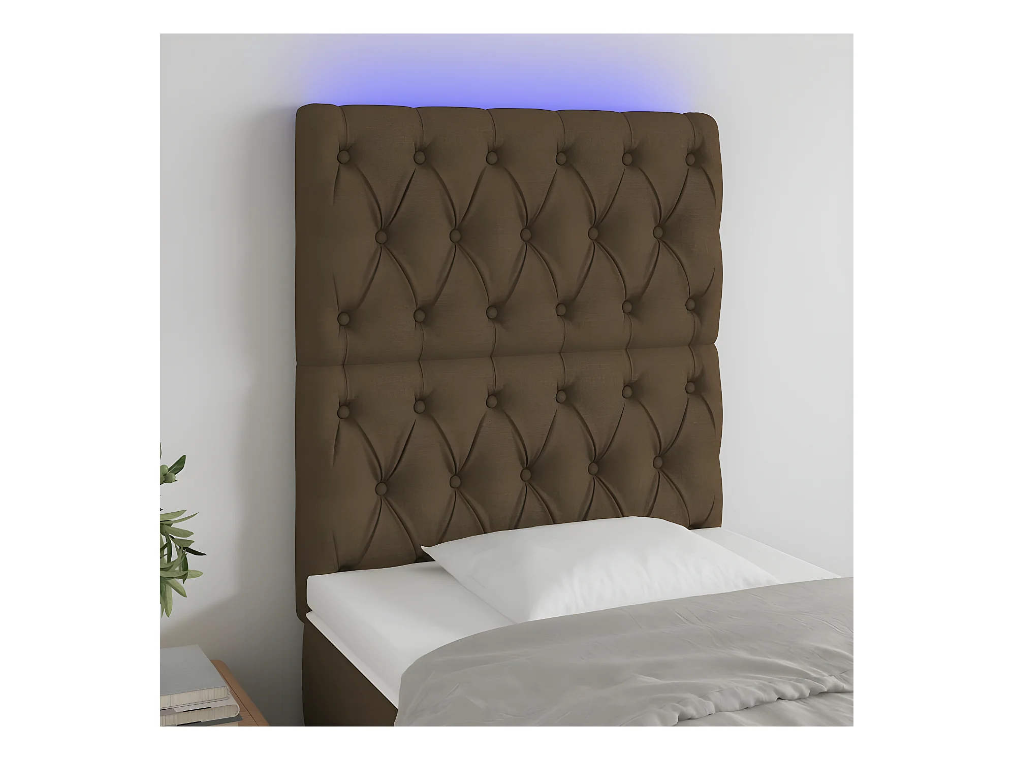 Tête de lit à LED Marron foncé 90x5x118/128 cm Tissu
