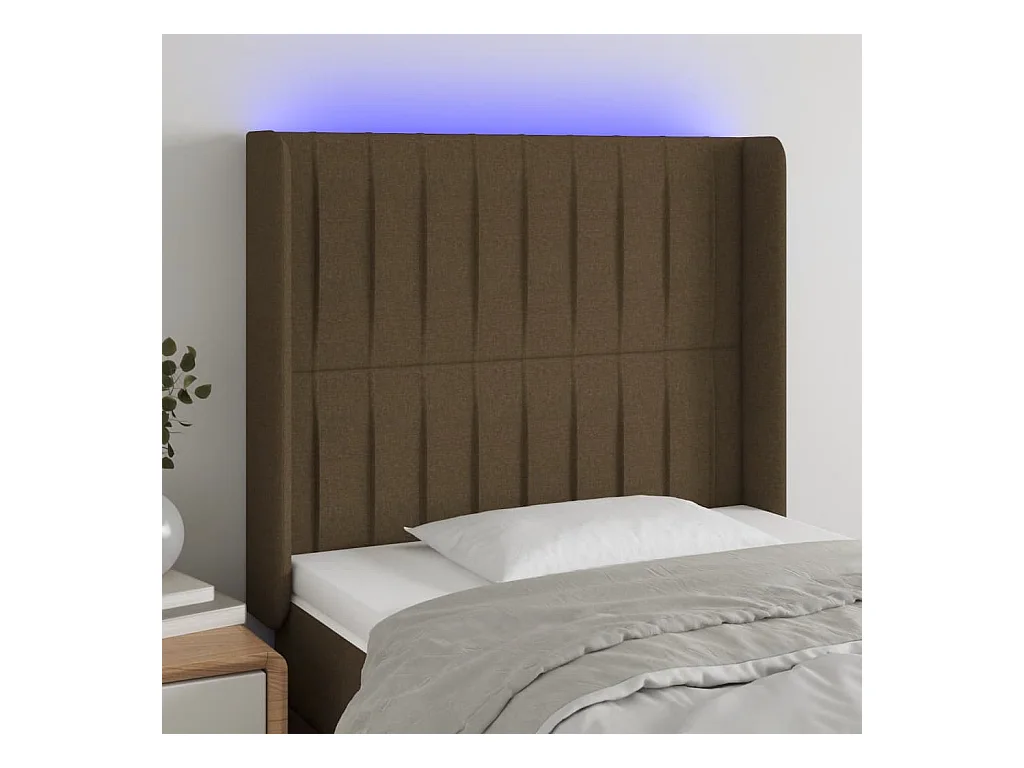Tête de lit à LED Marron foncé 100x5x118/128 cm Tissu