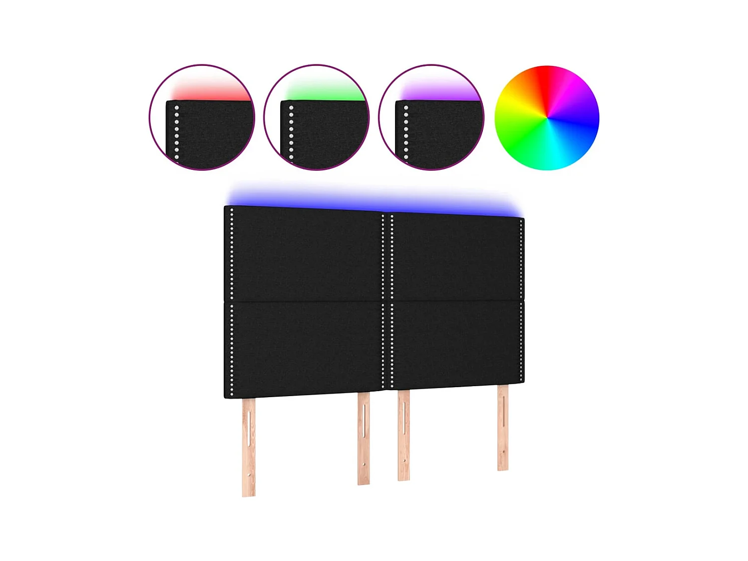 Tête de lit à LED Noir 144x5x118/128 cm Tissu