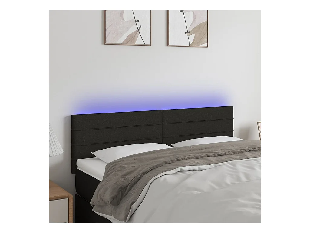 Tête de lit à LED Noir 144x5x78,88 cm Tissu LKC58594 BonneVie Meuble