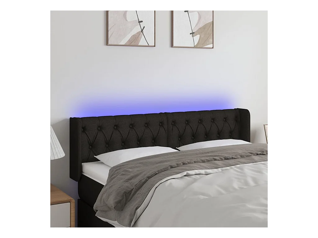 Tête de lit à LED Noir 147x16x78,88 cm Tissu LKC57574 BonneVie Meuble