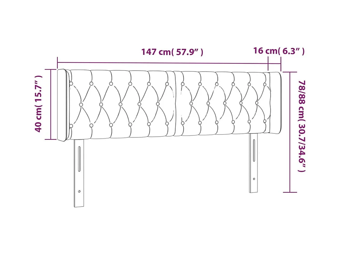 Tête de lit à LED Noir 147x16x78/88 cm Tissu