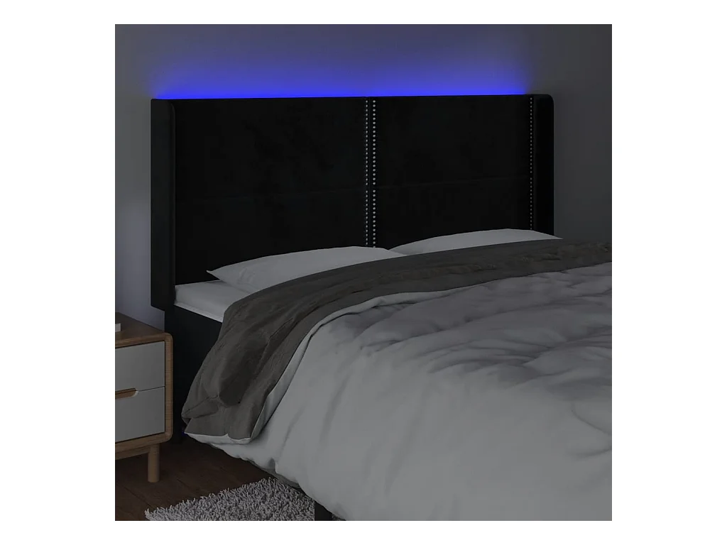 Tête de lit à LED Noir 163x16x118/128 cm Velours QED78350