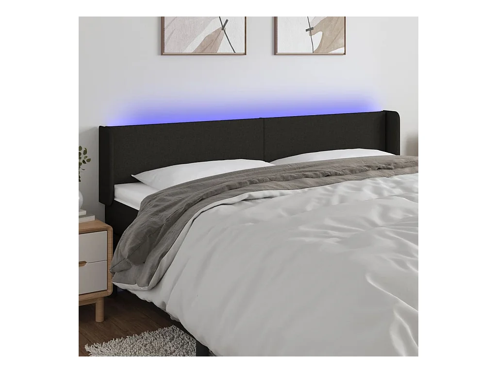 Tête de lit à LED Noir 183x16x78/88 cm Tissu