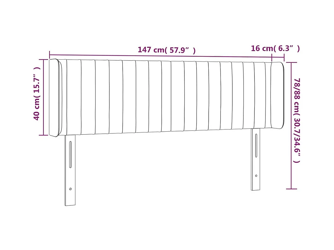 Tête de lit à LED Rose 147x16x78/88 cm Velours
