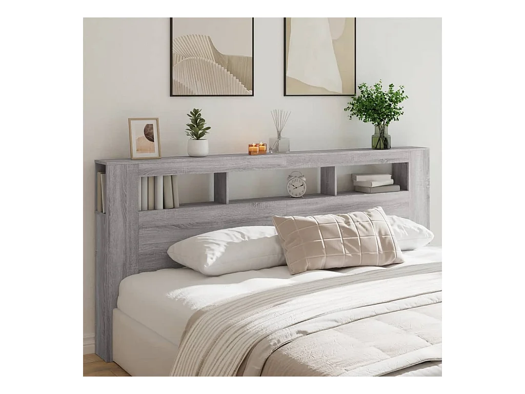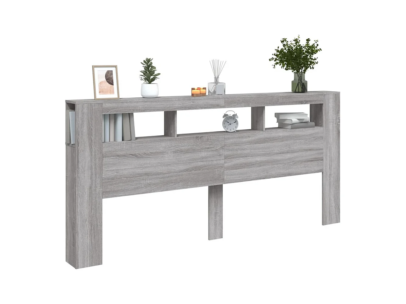 Armoire tête de lit avec LED sonoma gris 220x17x102 cm