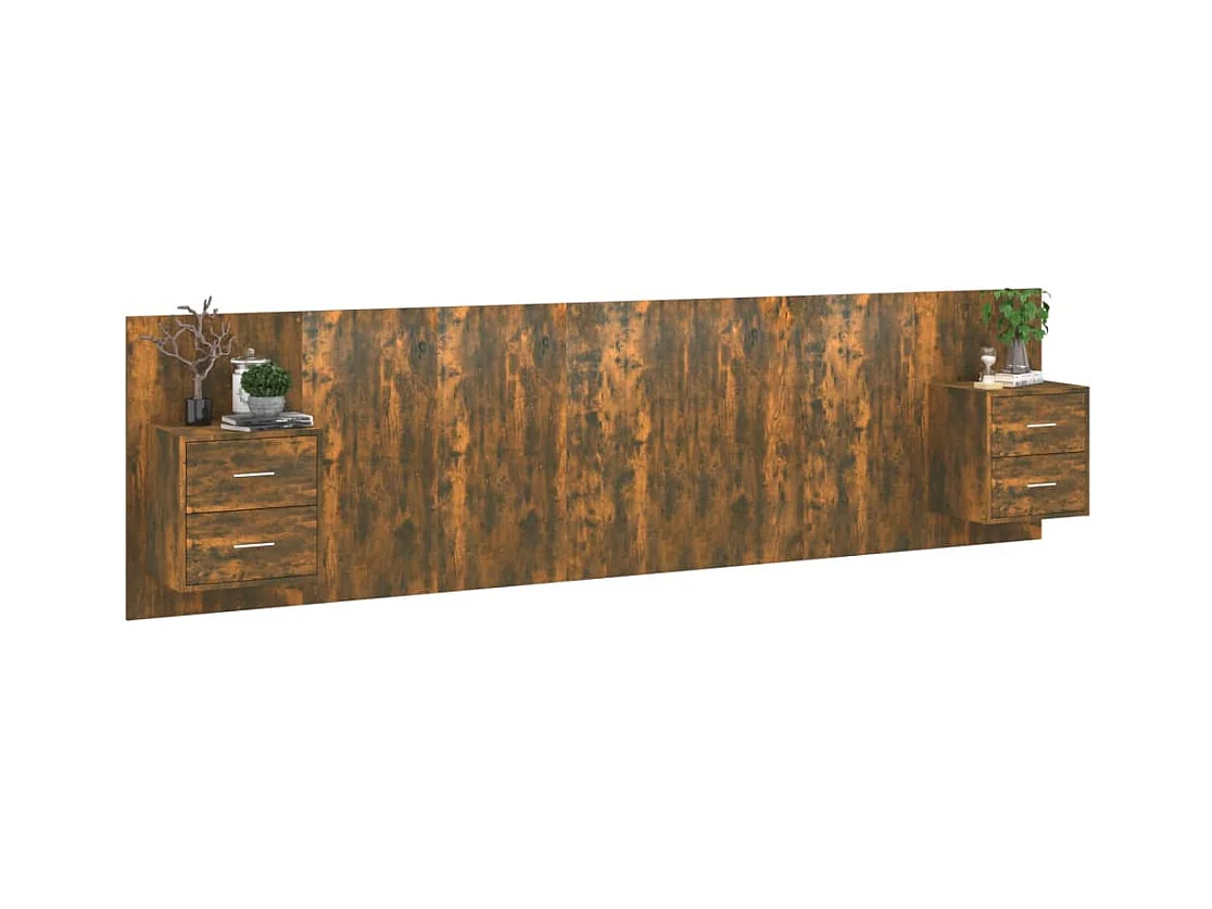 Tête de lit avec armoires Chêne fumé Bois d'ingénierie