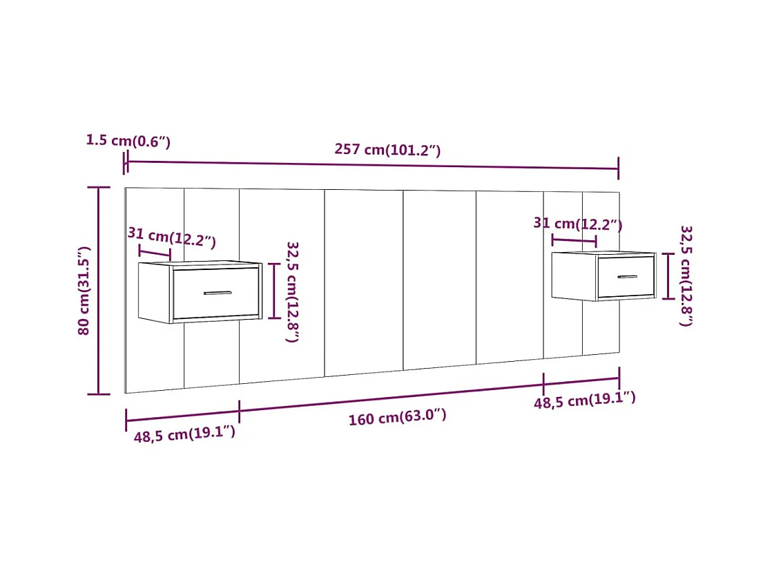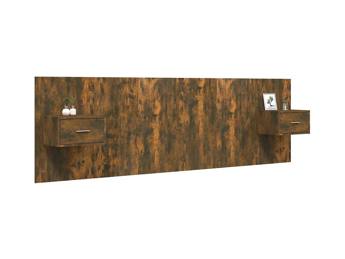 Tête de lit avec armoires Chêne fumé Bois d'ingénierie
