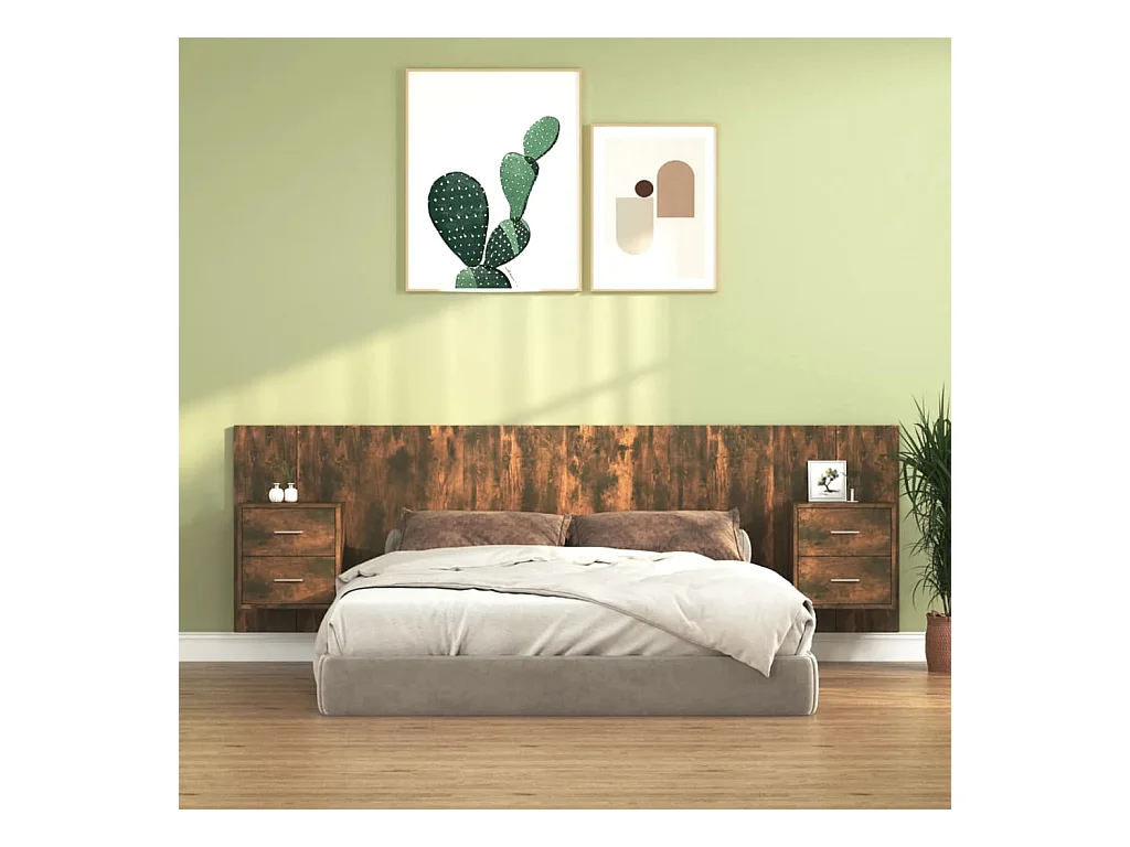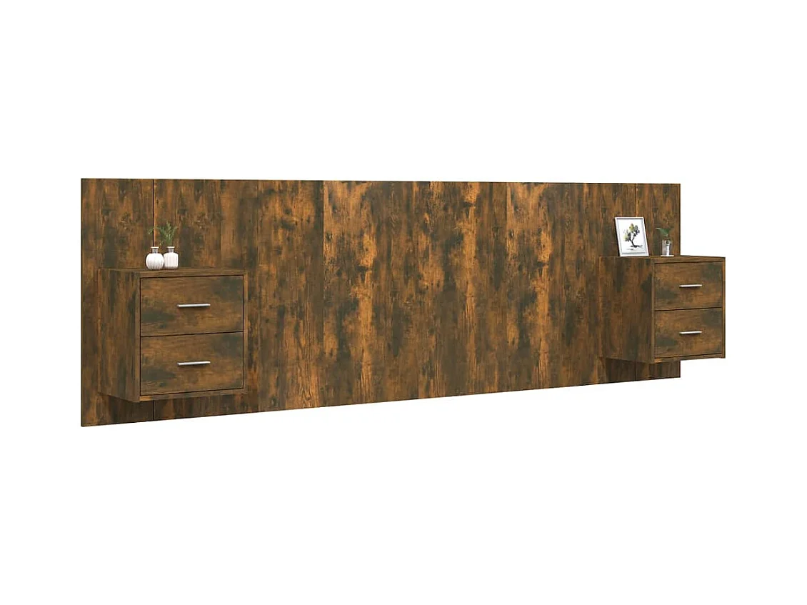 Tête de lit avec armoires Chêne fumé Bois d'ingénierie