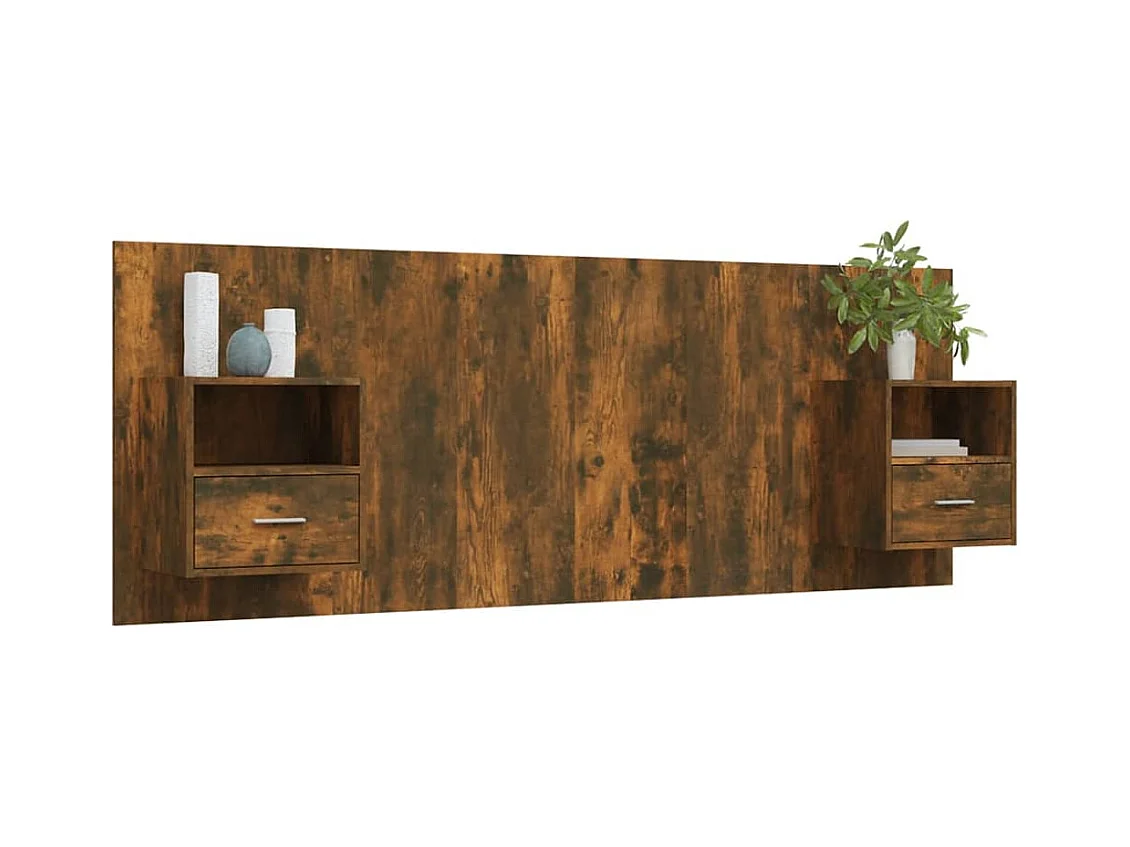 Tête de lit avec armoires Chêne fumé Bois d'ingénierie