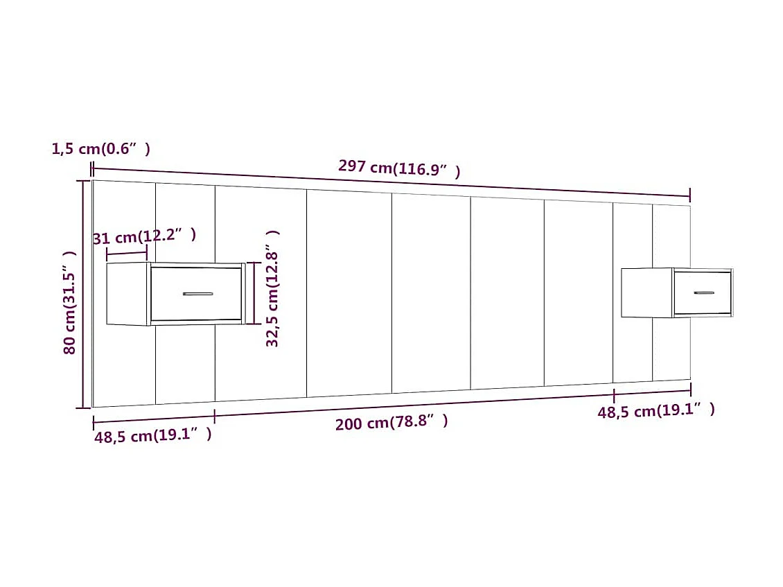 Armoire de tête de lit chêne fumé 120x18,5x102,5 cm POI91511 BonneVie Meuble