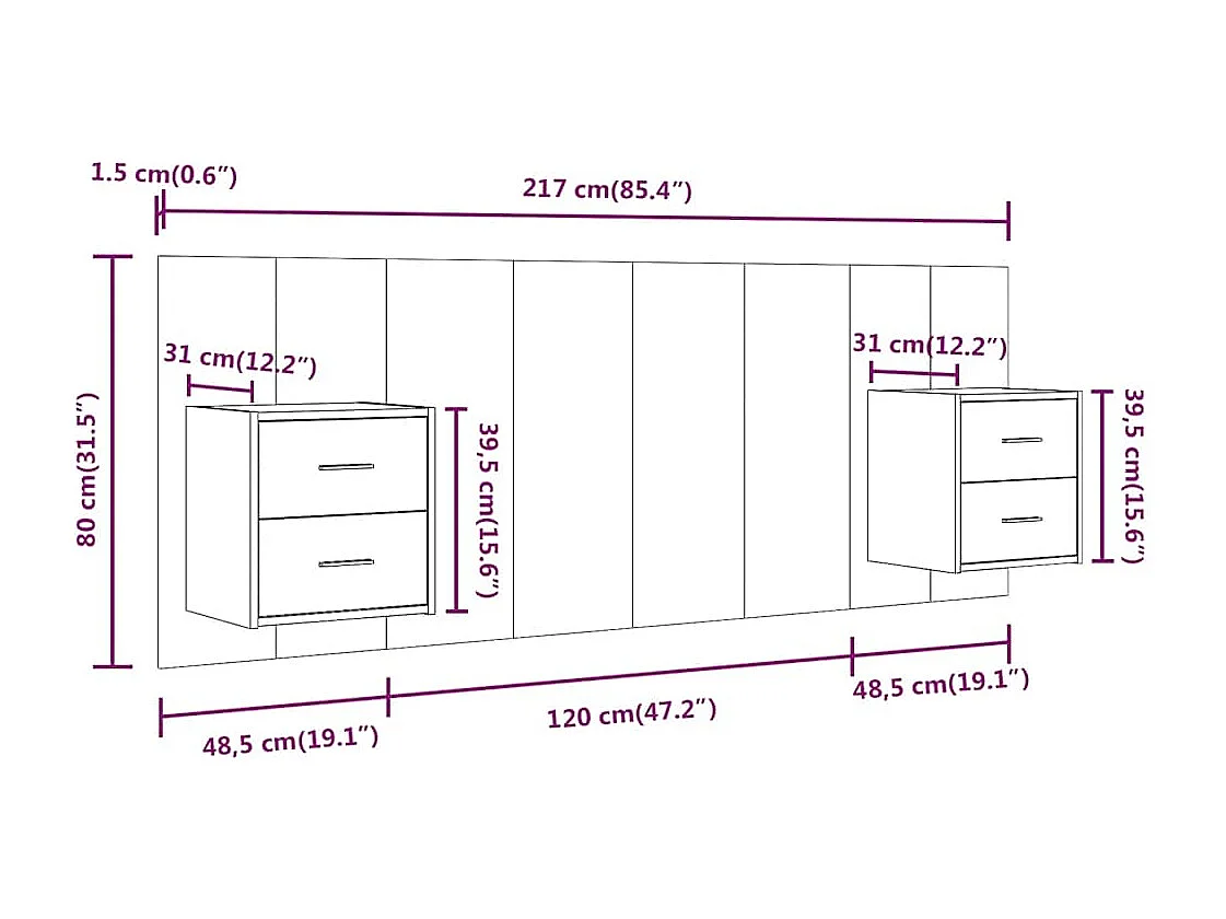 Tête de lit avec armoires sonoma gris Bois d'ingénierie
