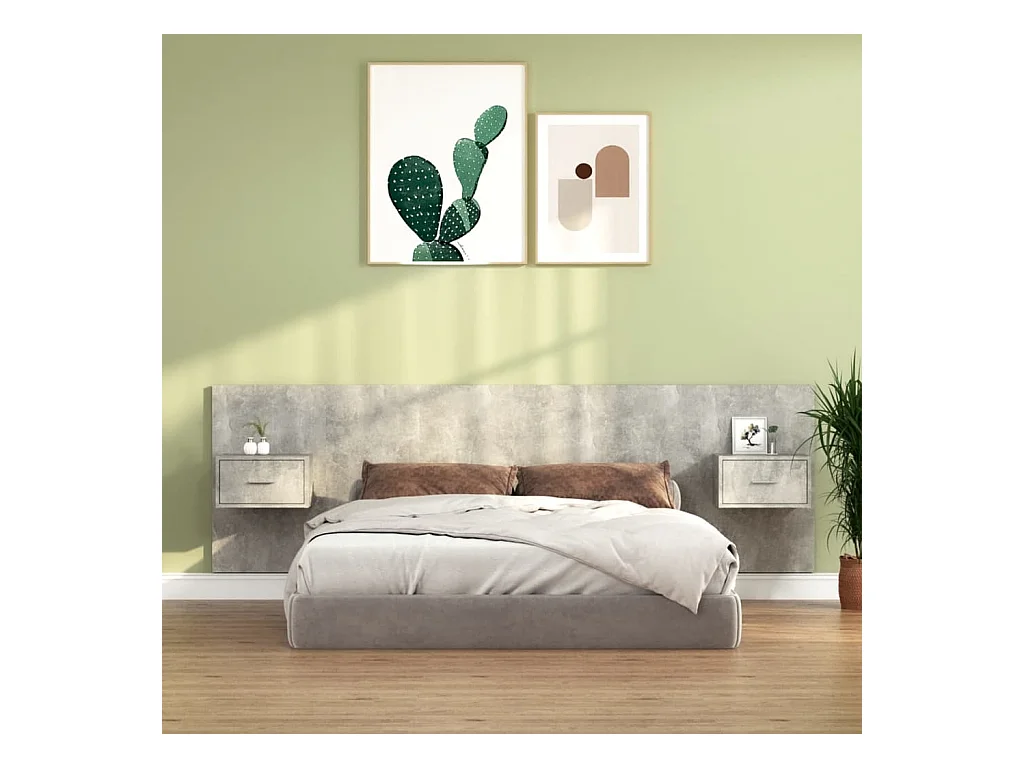 Tête de lit avec armoires Gris béton Bois d'ingénierie POI44893 BonneVie Meuble