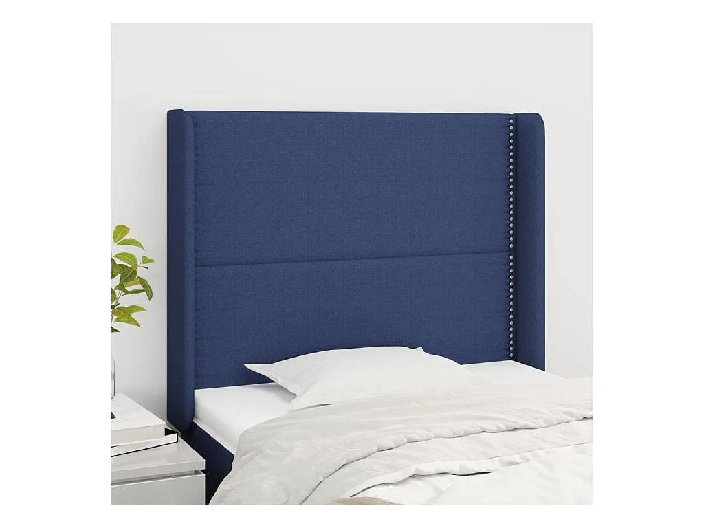 Tête de lit avec oreilles Bleu 93x16x118/128 cm Tissu
