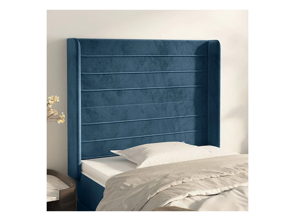 Tête de lit avec oreilles Bleu foncé 93x16x118,128 cm Velours PEWV47615 BonneVie Meuble