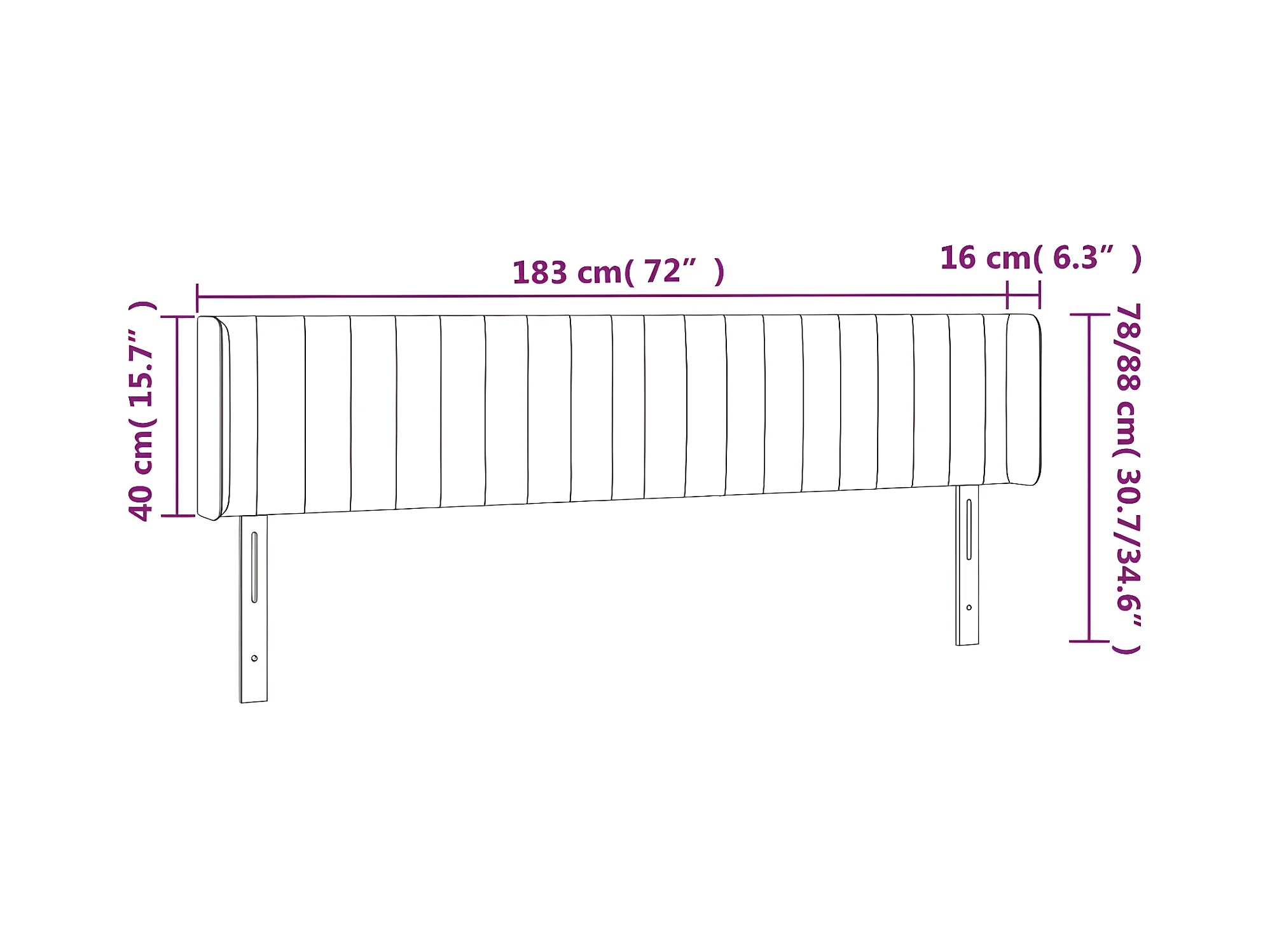 Tête de lit avec oreilles Bleu foncé 183x23x78/88 cm Velours