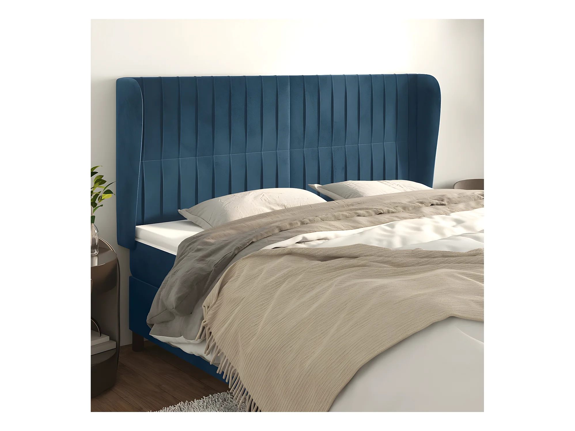 Tête de lit avec oreilles Bleu foncé 183x16x118/128 cm Velours