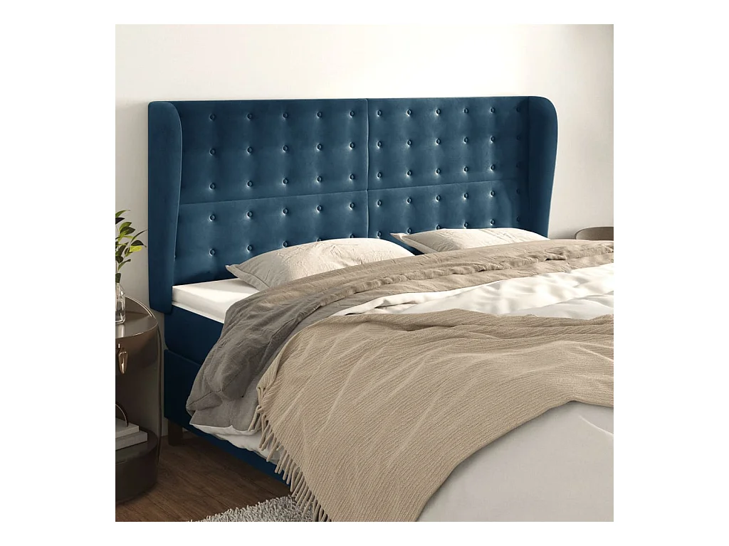 Tête de lit avec oreilles Bleu foncé 183x16x78/88 cm Velours FR223648