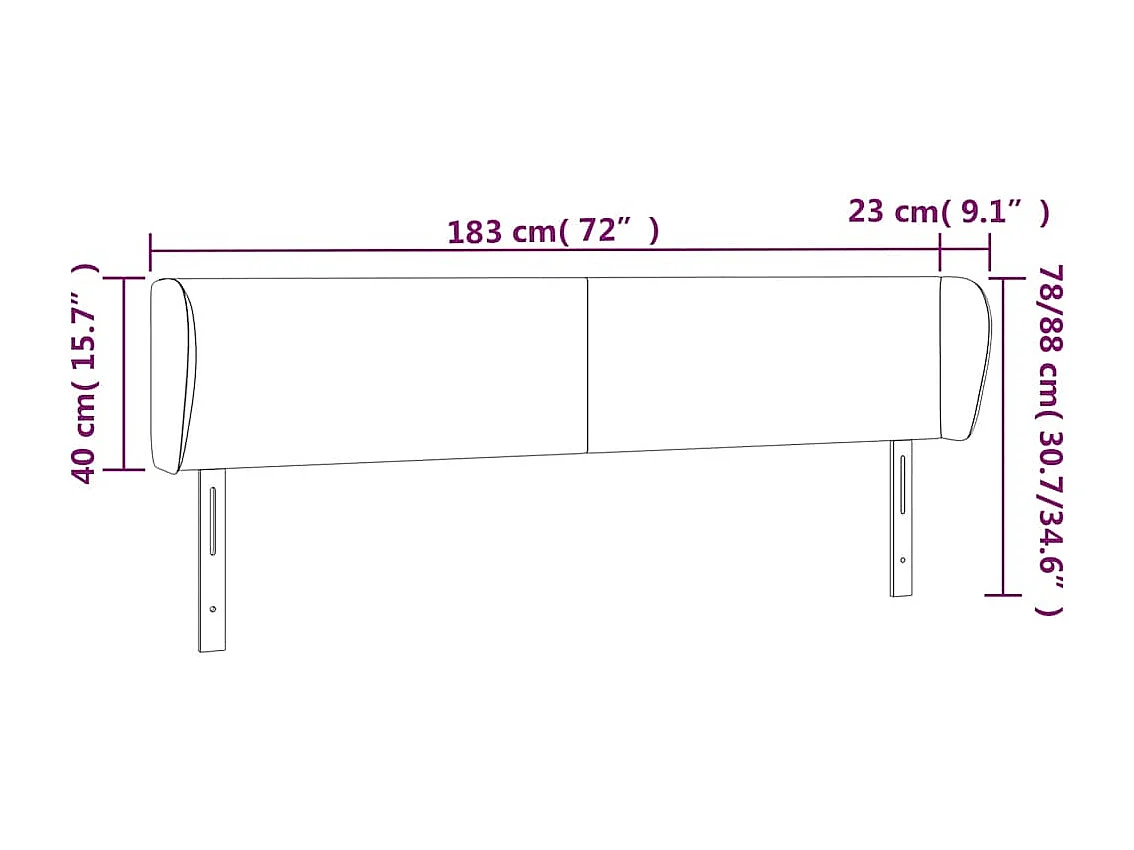 Tête de lit avec oreilles Bleu foncé 183x23x78/88 cm Velours