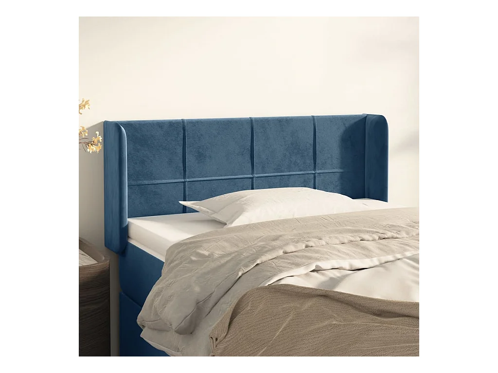 Tête de lit avec oreilles Bleu foncé 103x23x118/128 cm Velours