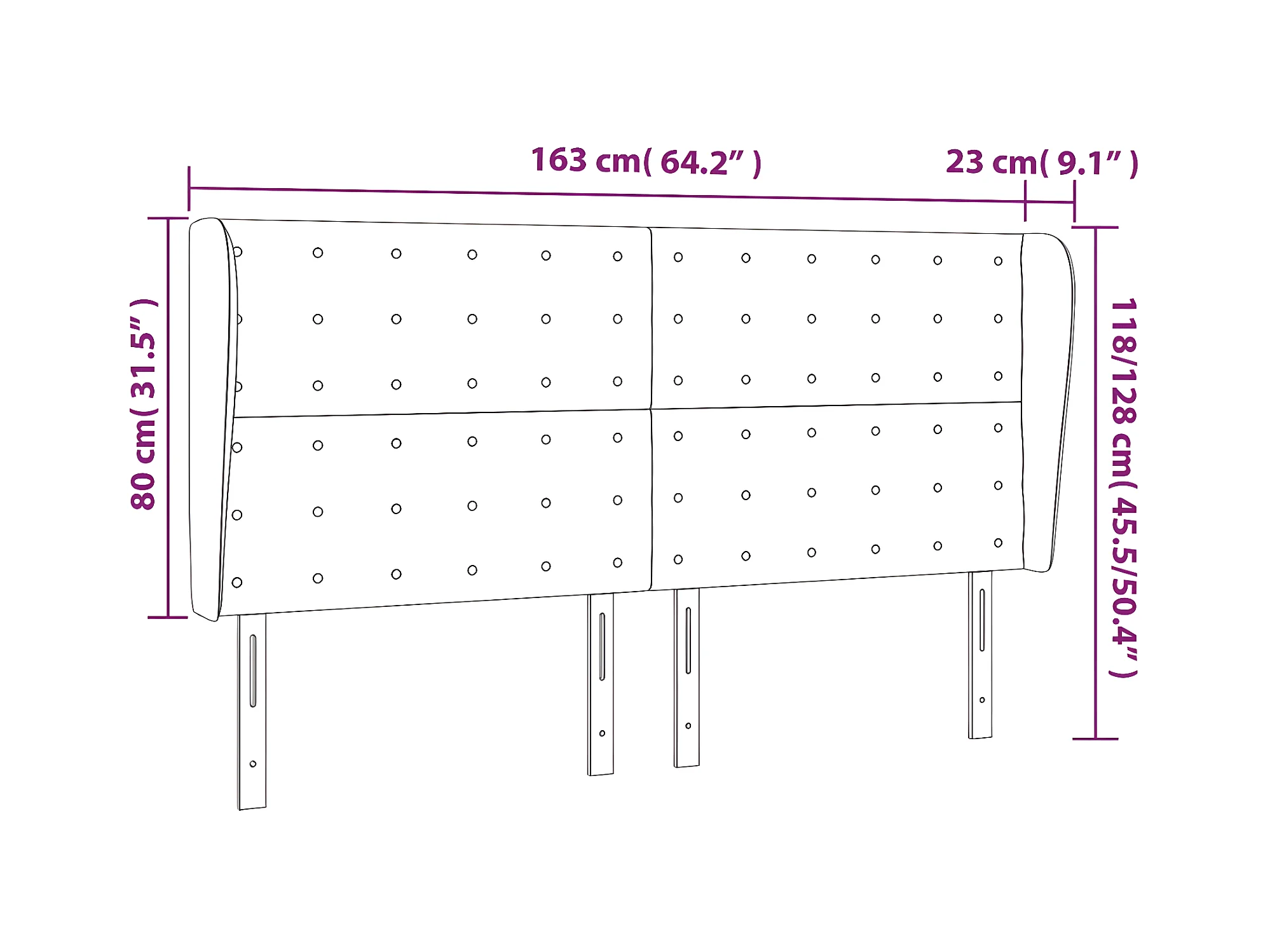 DHOME Tête de lit similicuir avec 2 rangées de boutons 160x105cm avec pieds Lits 150/160 - Argile